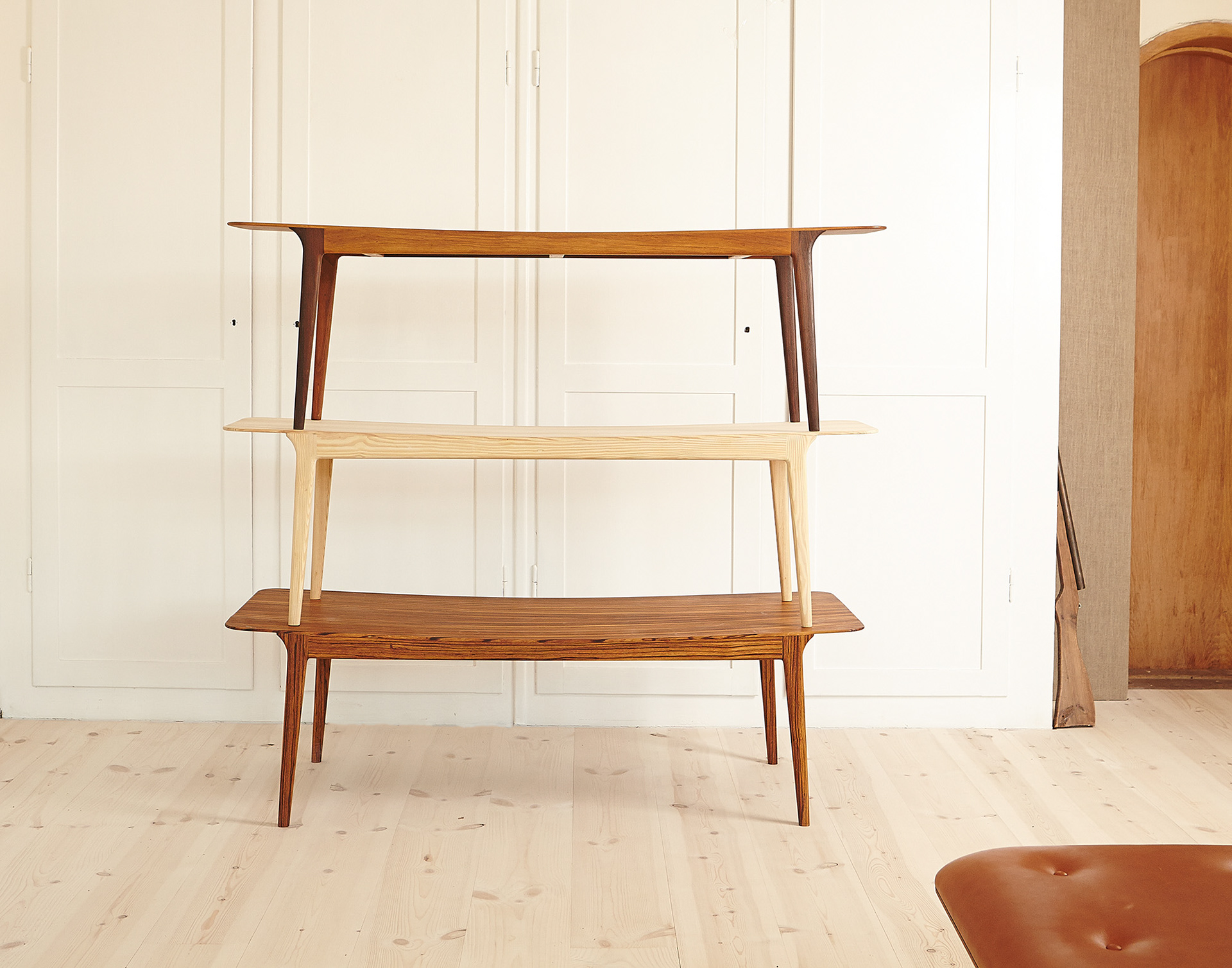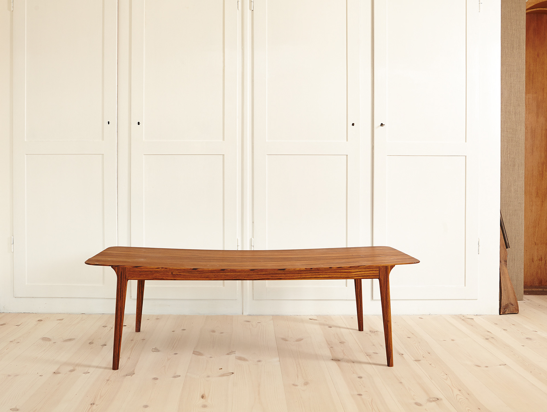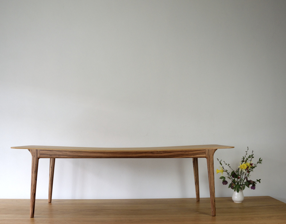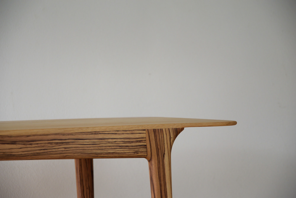 The top leaf is crafted from a single plank of solid wood, which is constructed with a light curve.