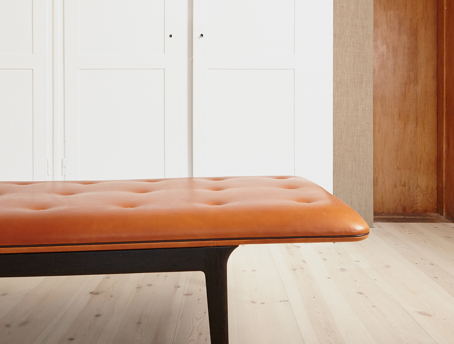 Hardwood Wegne base and Anilin leather buttoned upholstery