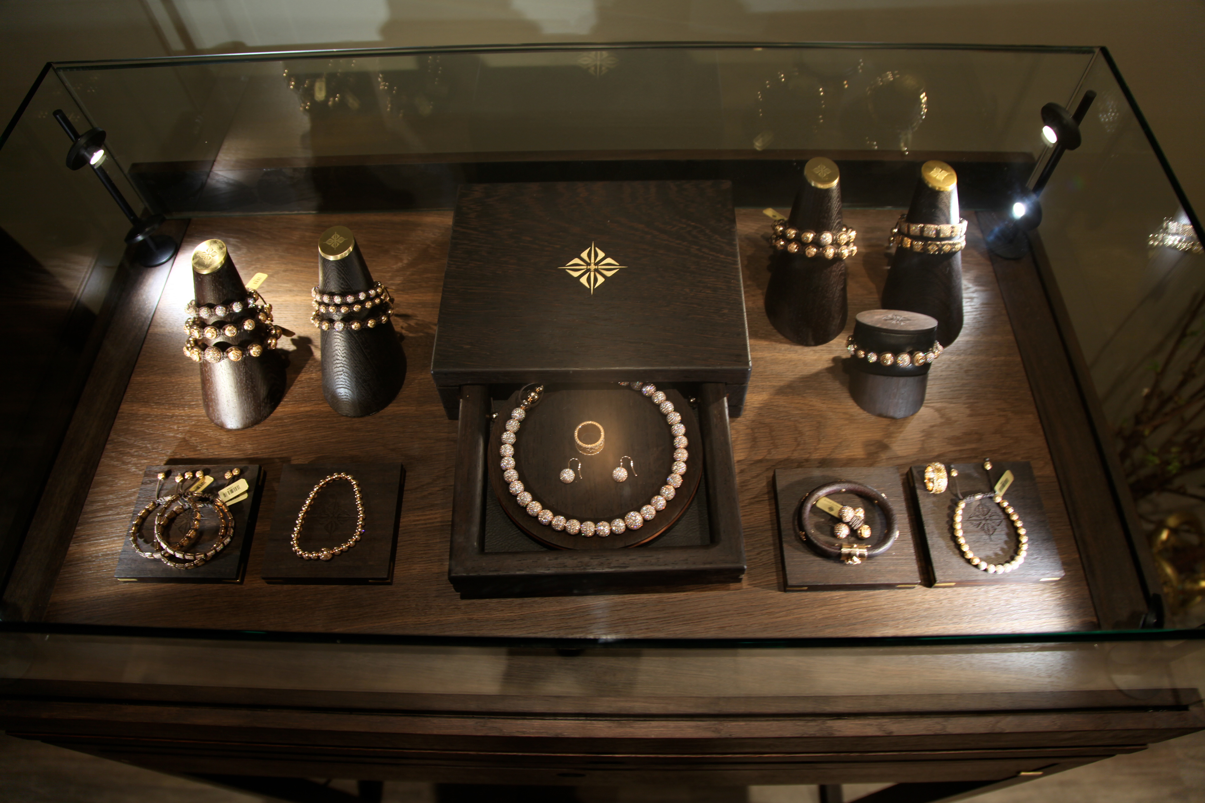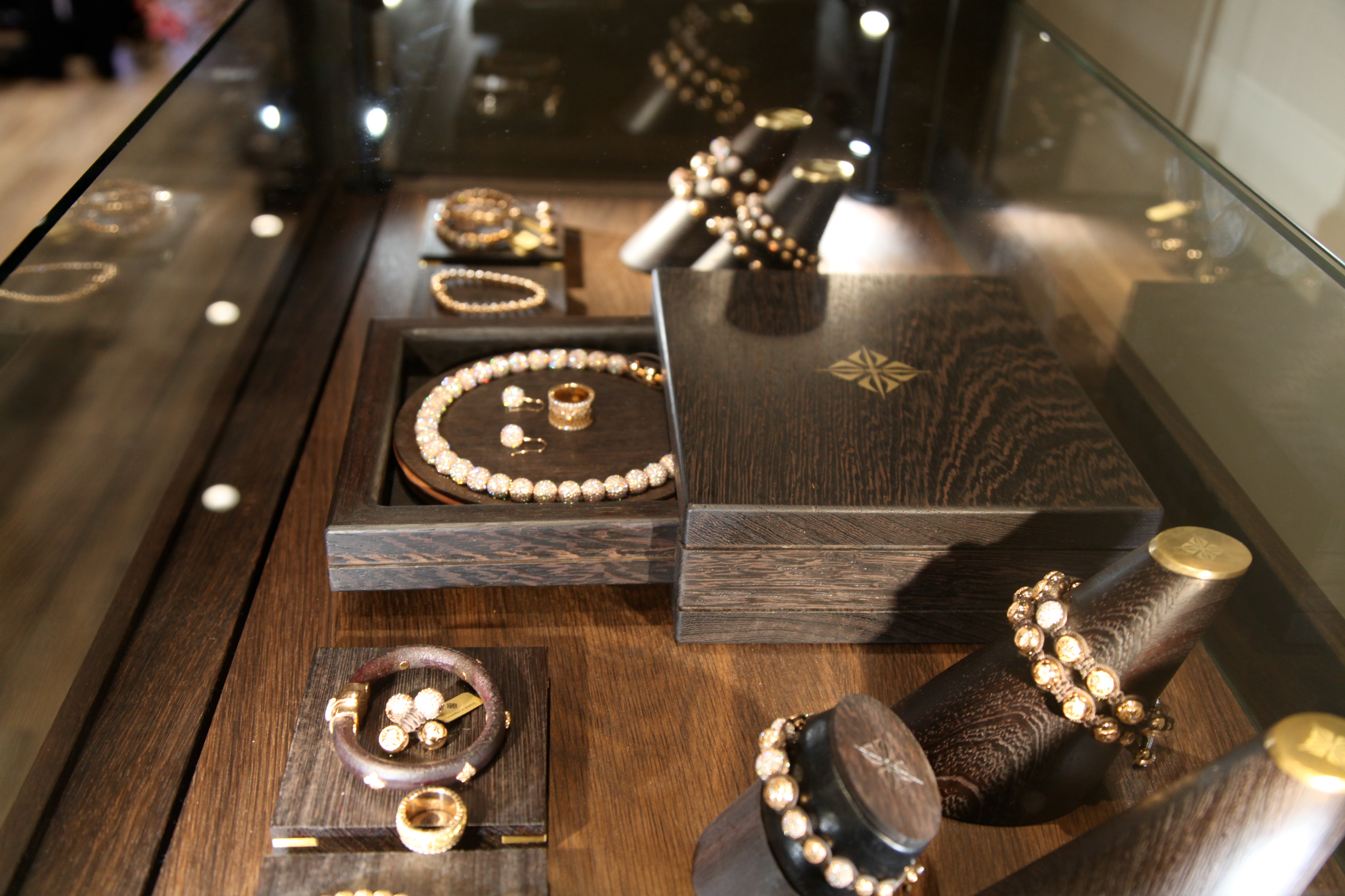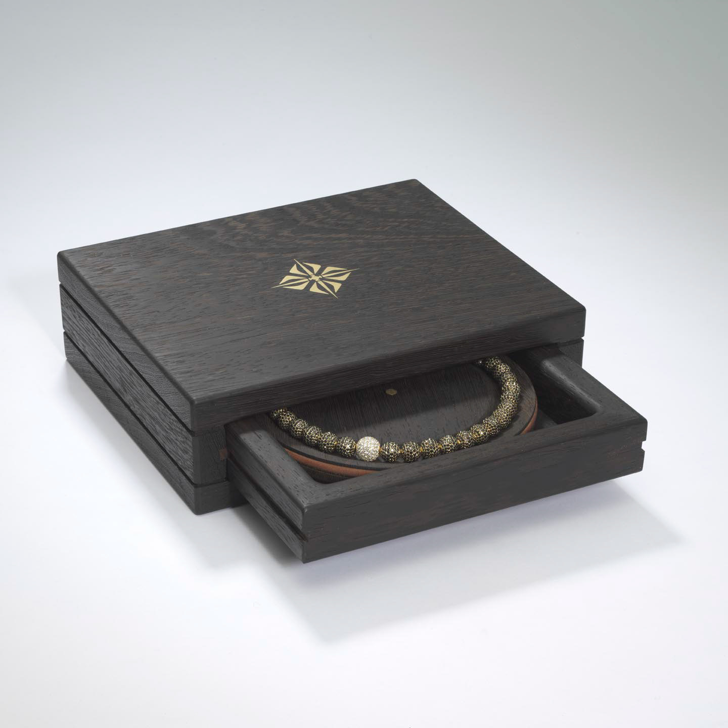 Wooden jewelry box made of Wenge and brass logo engrave for Shamballa jewels in Copenhagen.